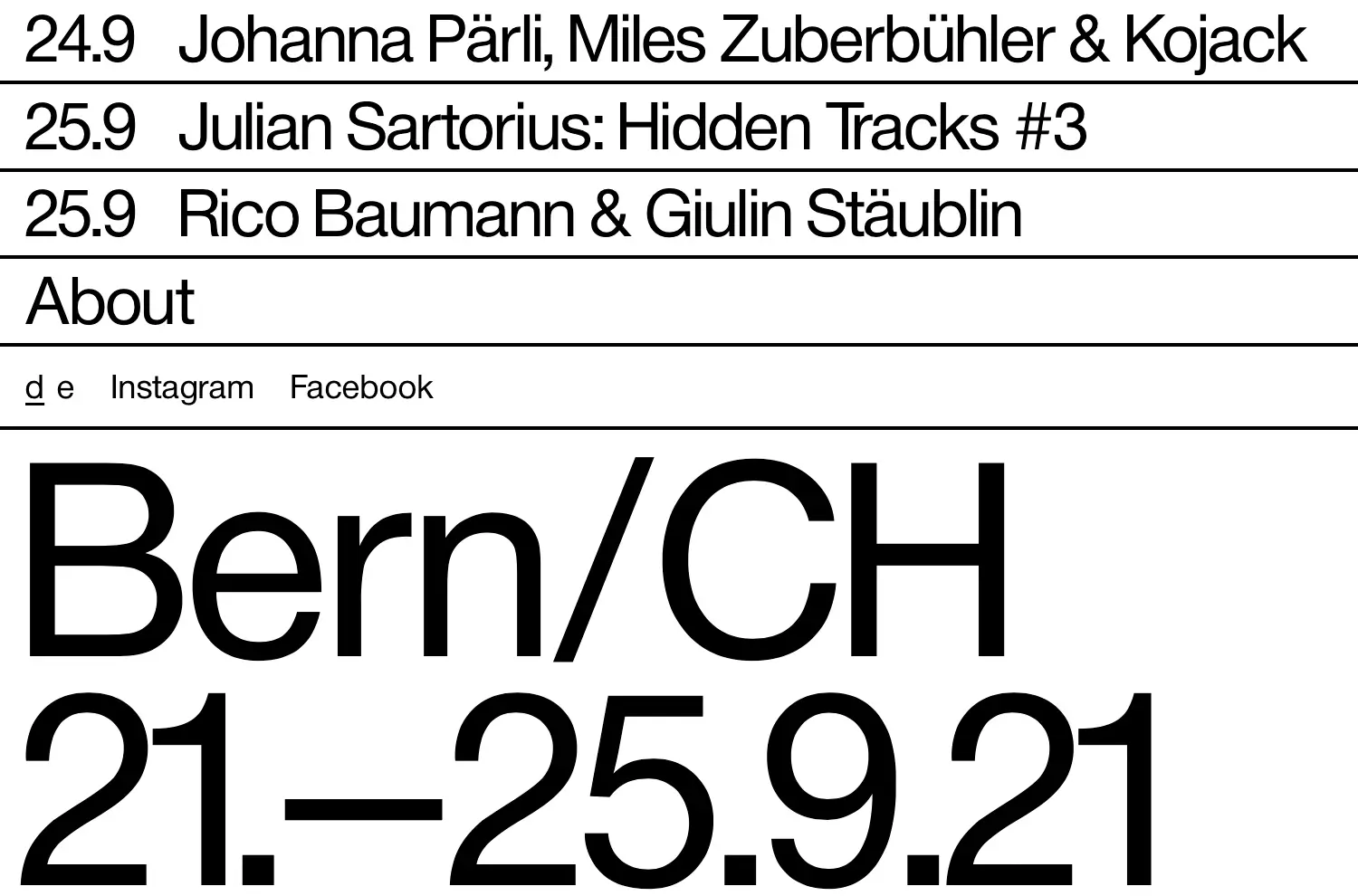 In Kollaboration mit der Berner Grafikerin Katharina Reidy entwickelte ich die Website für das kleine Festival. Auf Basis des von Ksawery Komputery entwickelte P5JS Script werden die Bilder der Musiker zum interaktiven Erlebnis und Klangwelten des Künstlers Philipp Moll untermalen zudem Mouseover Effekte. Auf Basis von WordPress kann das Festival die Inhalte selbständig verwalten.
