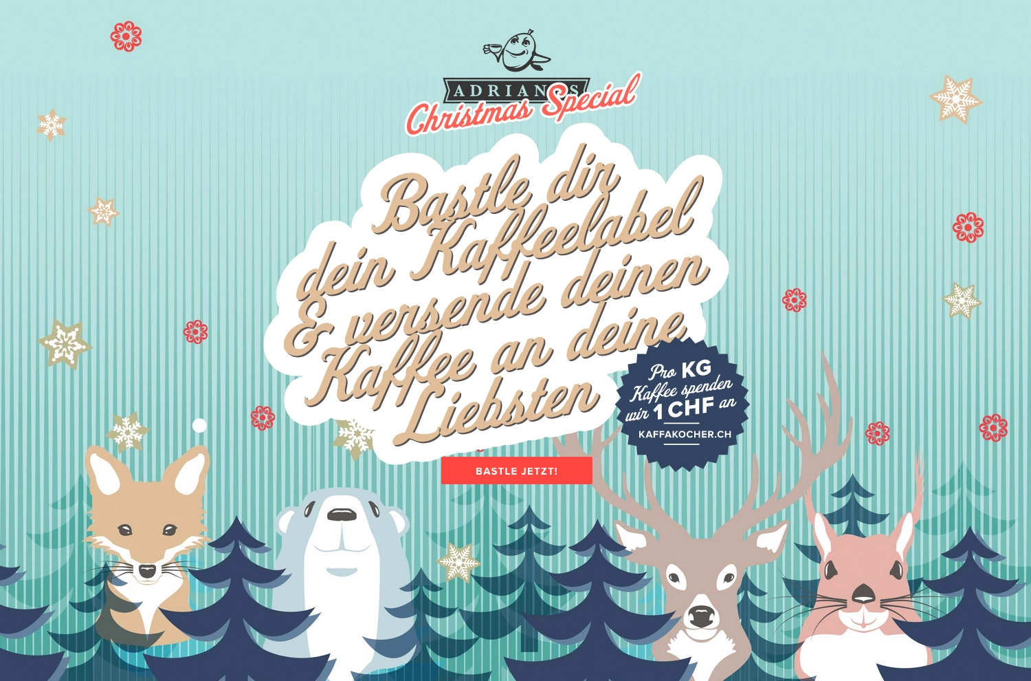 I programmed a web application for the popular and innovative Adrianos café in Bern. Using buttons, sliders and colour selection, you can put together a personalised coffee with your own dedication, colour and degree of roast.