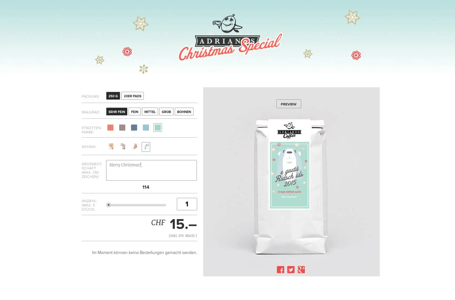 In collaboration with Kargo, I developed a coffee configurator for Adrianos for Christmas.