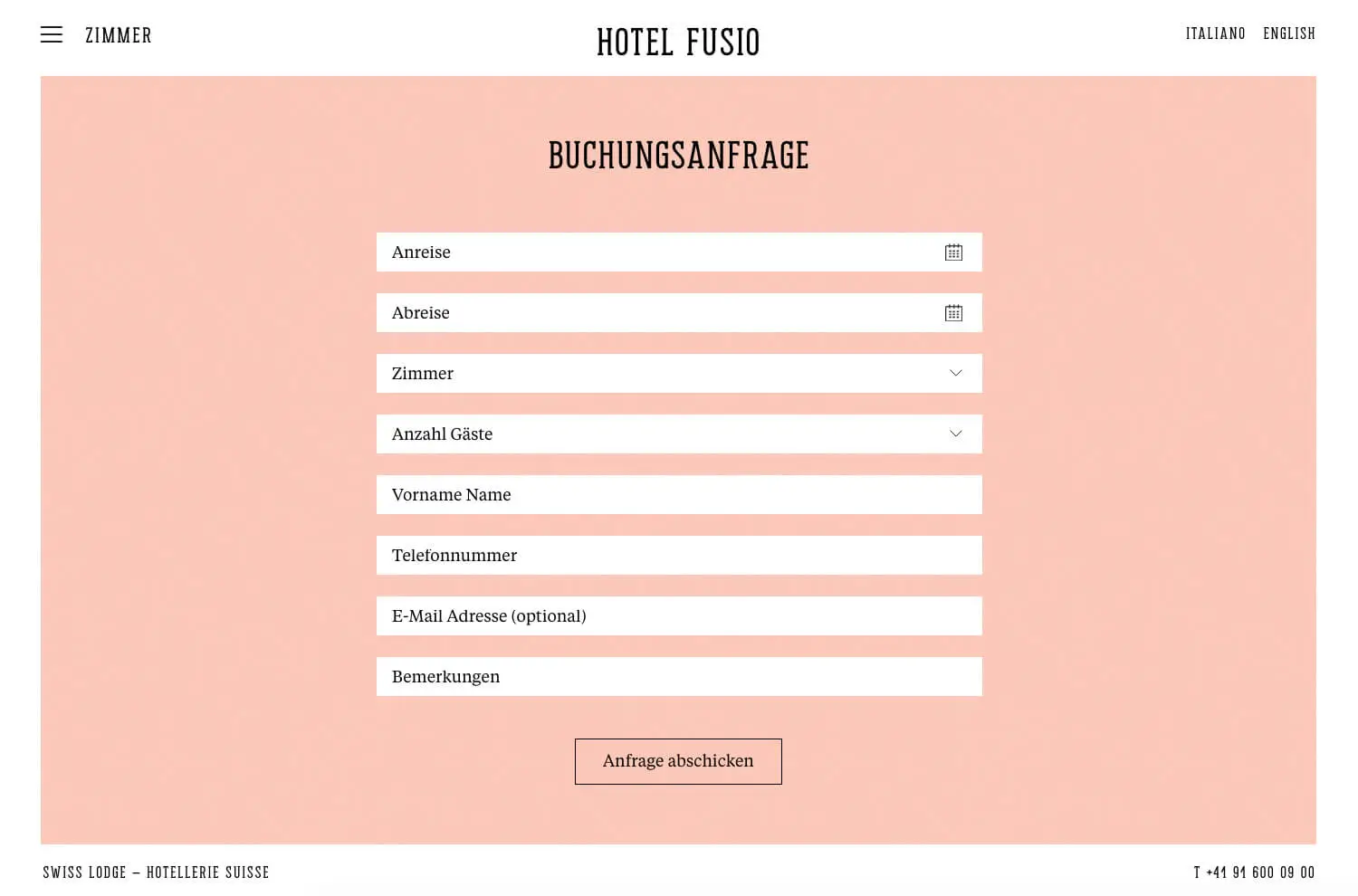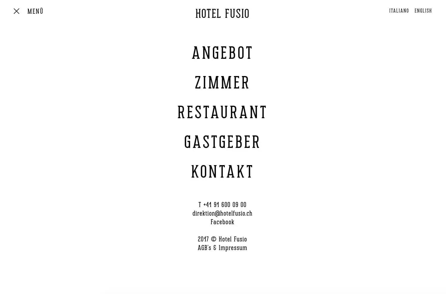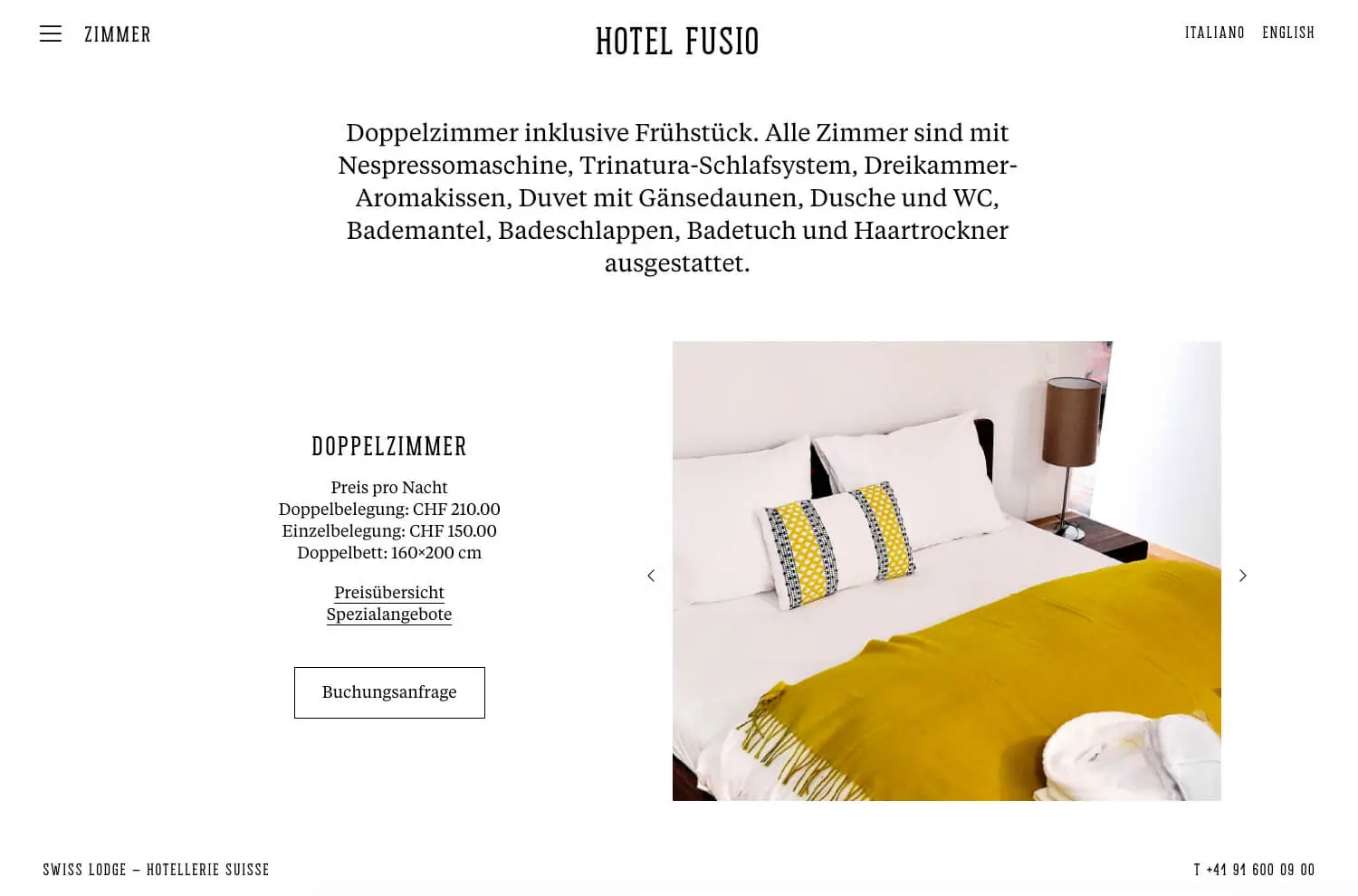The website for the small but beautiful Hotel Fusio in Ticino was created in collaboration with the graphic design studio Hej in Zurich. Hotel Fusio, which was renovated in 2016, offers 12 double rooms and is located in the beautiful Maggia Valley in Italian-speaking Switzerland.