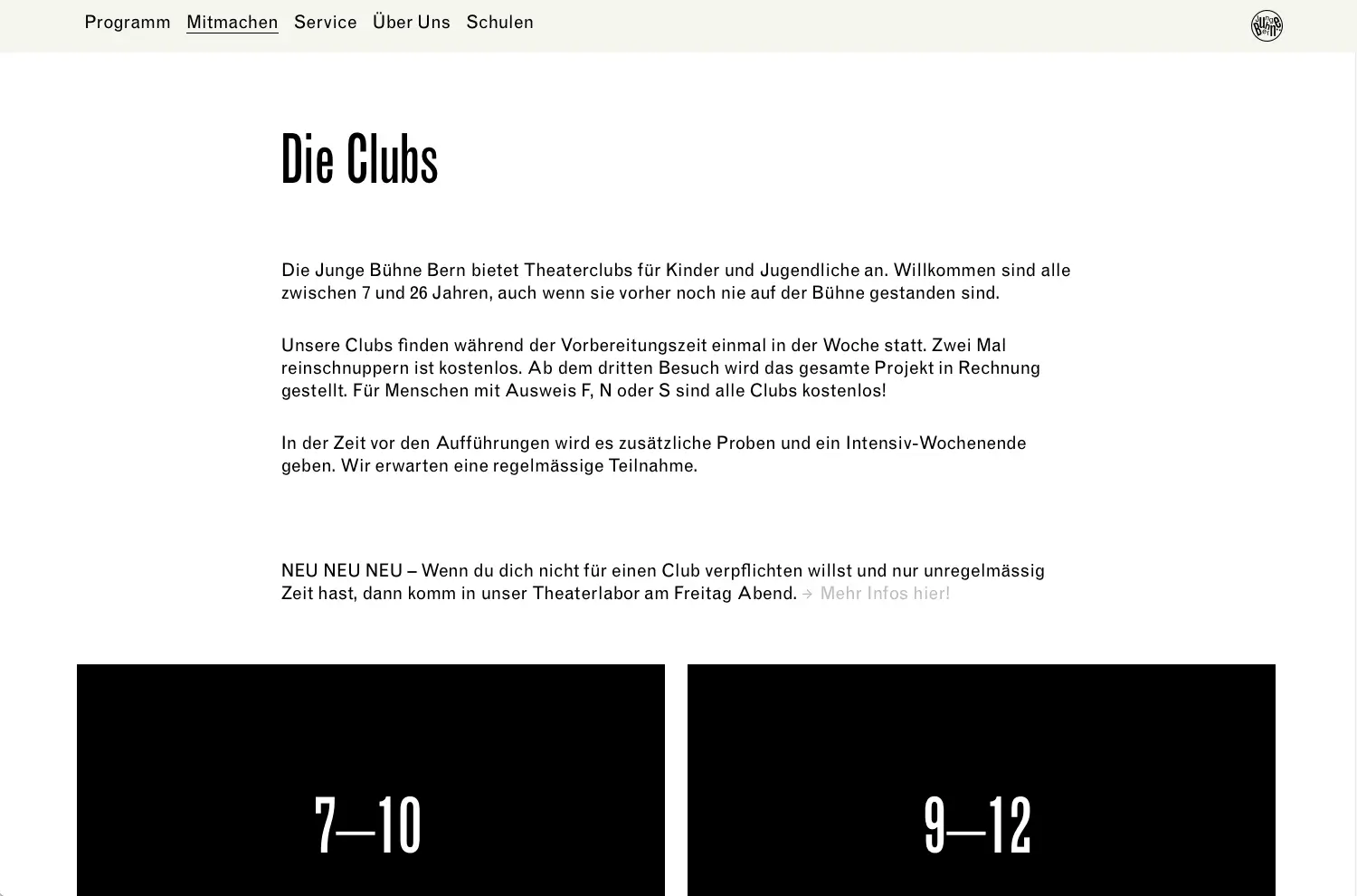 Since its foundation in 2006, the Junge Bühne Bern has been committed to children and young adults who are enthusiastic about theatre and want to let off steam on stage. In addition to the numerous projects with children and young people from the greater Bern area, the Junge Bühne has also long been committed to the integration of asylum seekers and Swiss nationals. Several choreographers, theatre teachers and musicians are involved in supporting the more than 200 club members to ensure that the Junge Bühne Bern can continue to help shape Bern’s cultural landscape in the future.