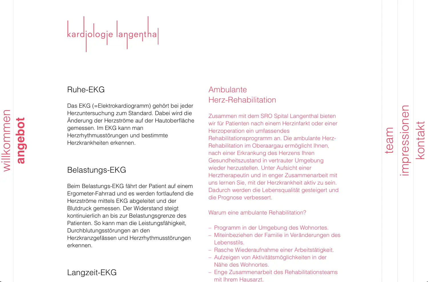 Langenthal Cardiology is a cardiac practice in Oberaargau. With a team of four heart specialists and two practice locations, they offer a competent and comprehensive outpatient assessment and treatment of heart disease.