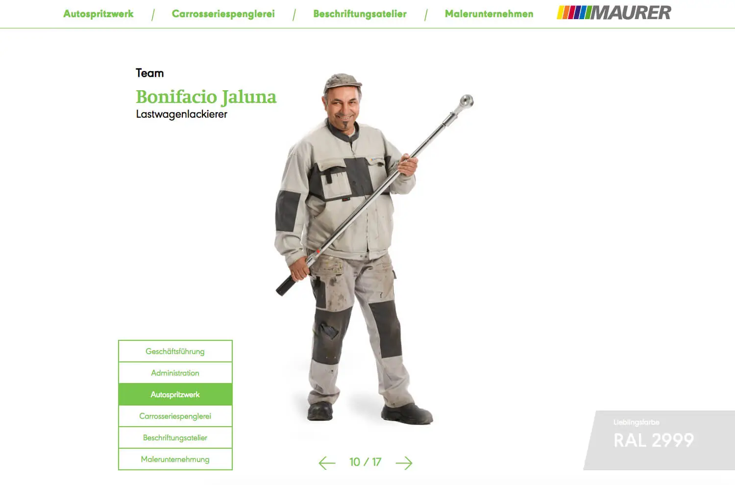With a lot of colour, white space, large typography and beautiful imagery, the website stands out from the drabness of industrial websites. Every week a RAL colour of the week is chosen, members present themselves in their work clothes and with their favourite colour. The website is supported by WordPress and a design that adapts to the respective screen size.