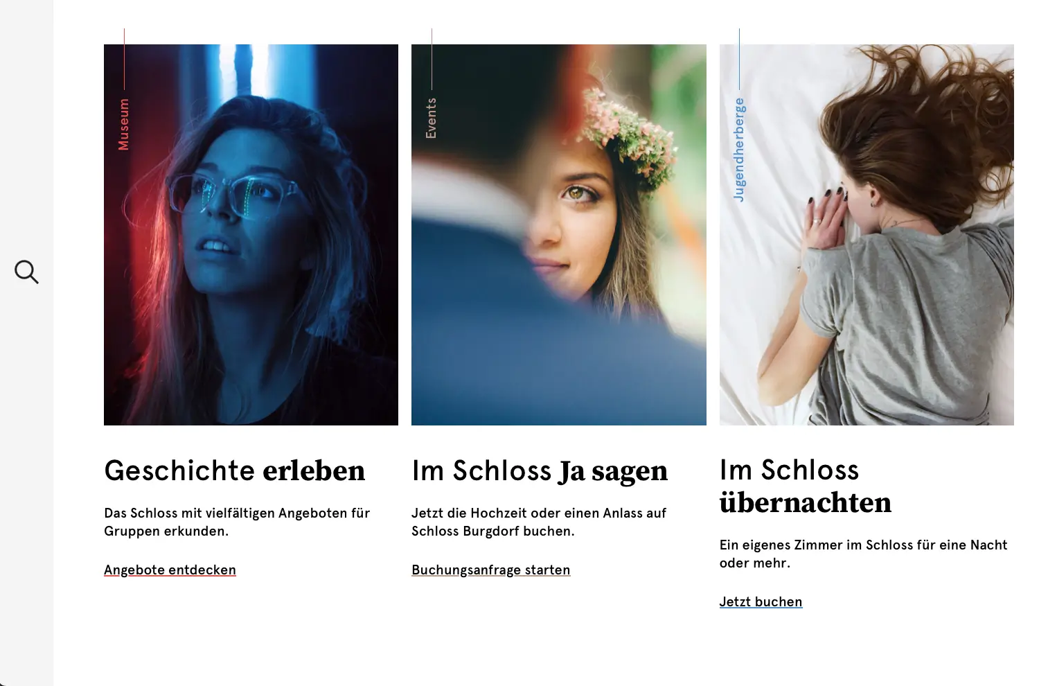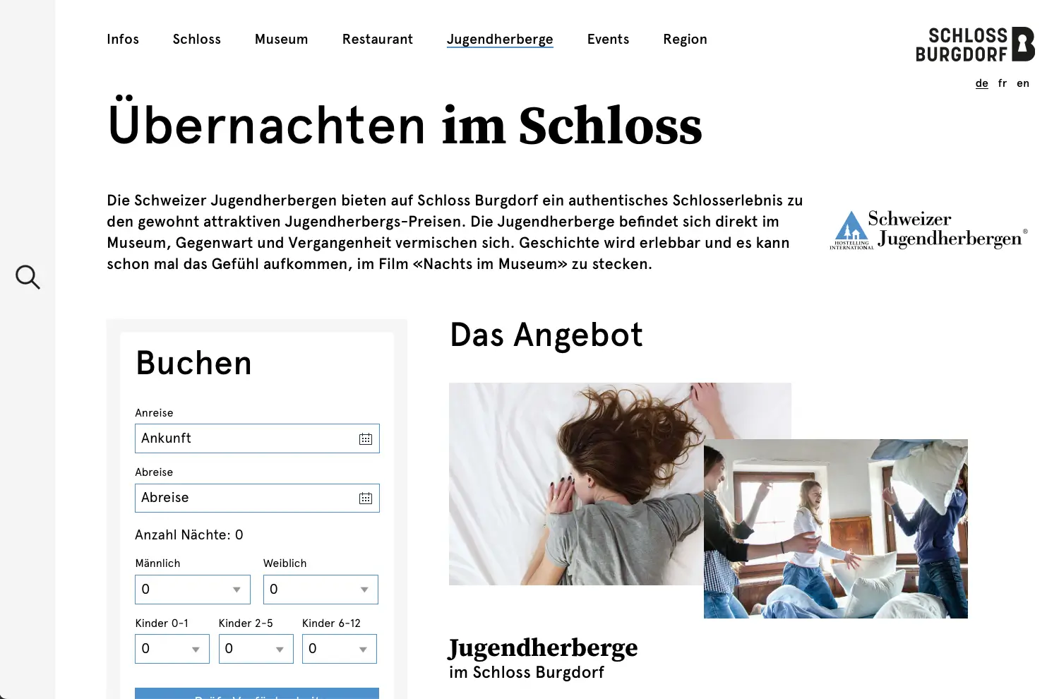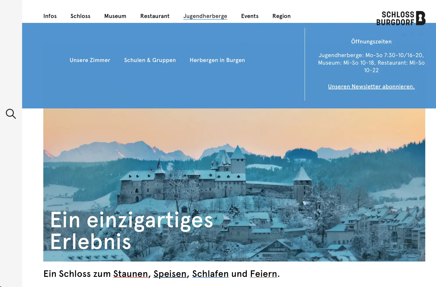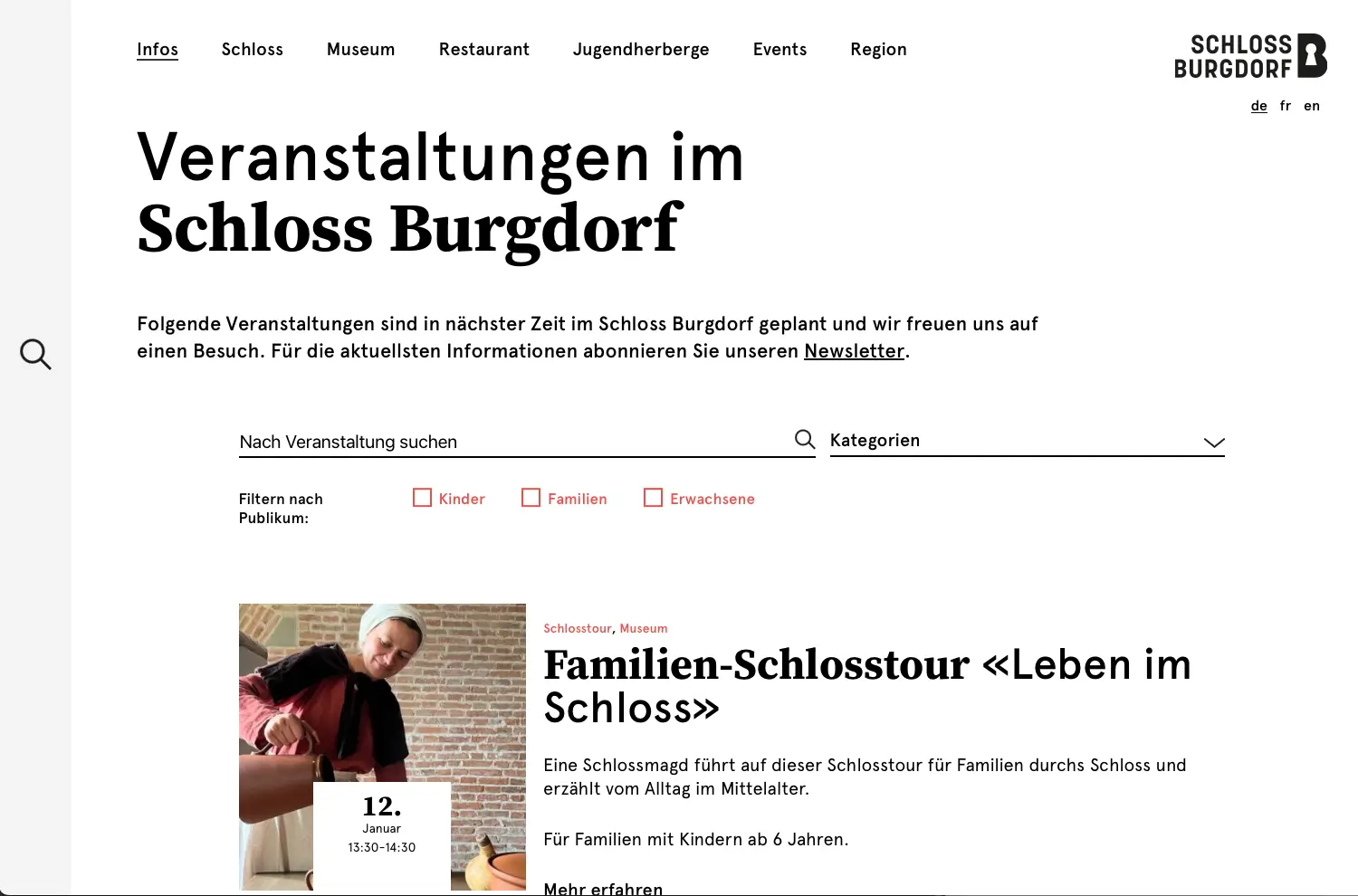 In collaboration with Kargo, I developed the new website for the new cultural centre. The different areas are differentiated by colour, there is a reservation tool, integrated translation tools and multilingualism, as well as an interface to Youthhostels. Based on WordPress, the customer can manage all content independently.