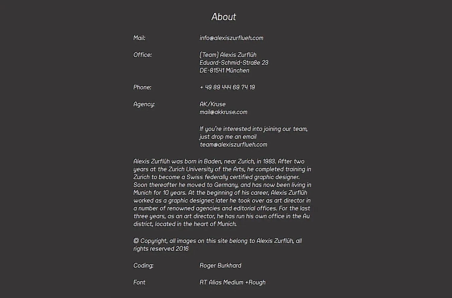 I developed the new portfolio website for the renowned Munich graphic design studio (Team) Alexis Zurflüh.